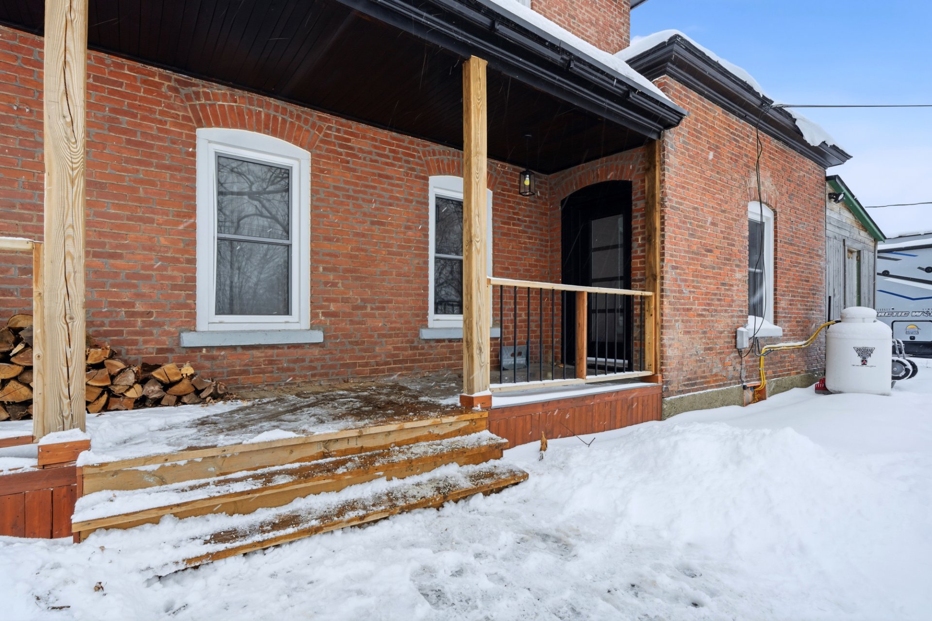 galerie couverte et son ambiance chaleureuse grâce au poêle