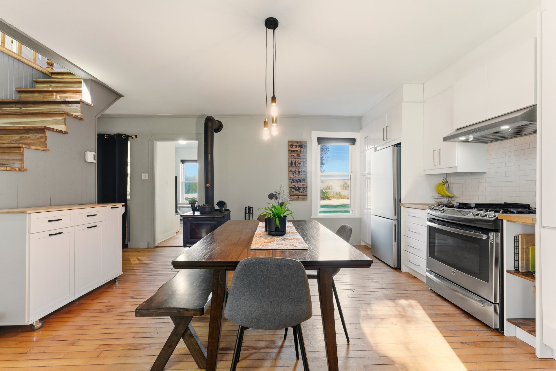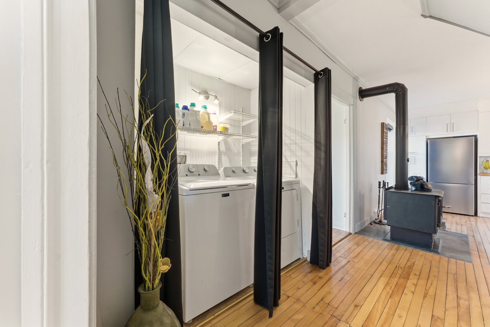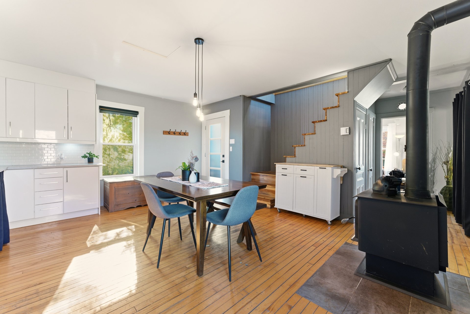 à bois et à la thermopompe. La cuisine et la salle de bain