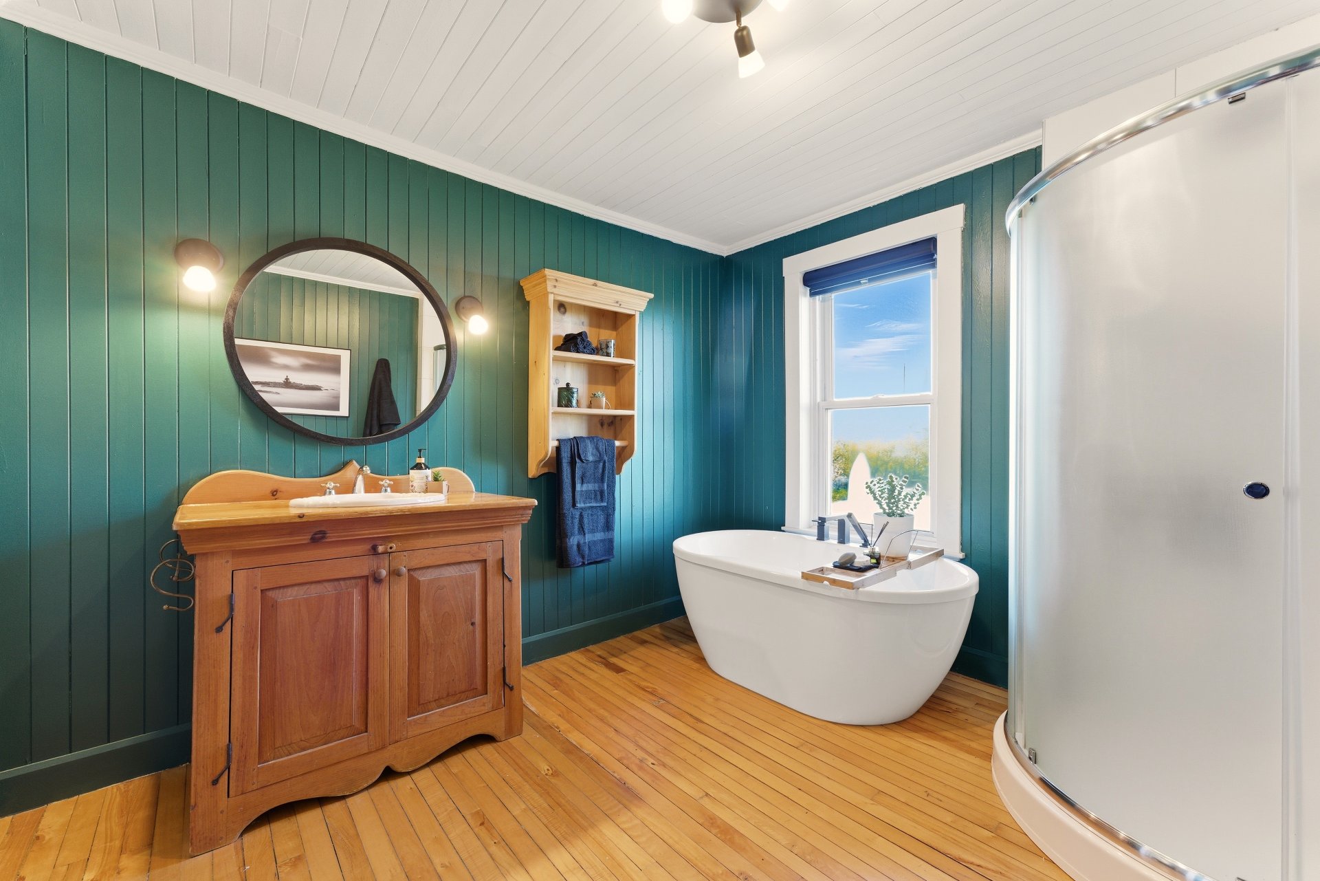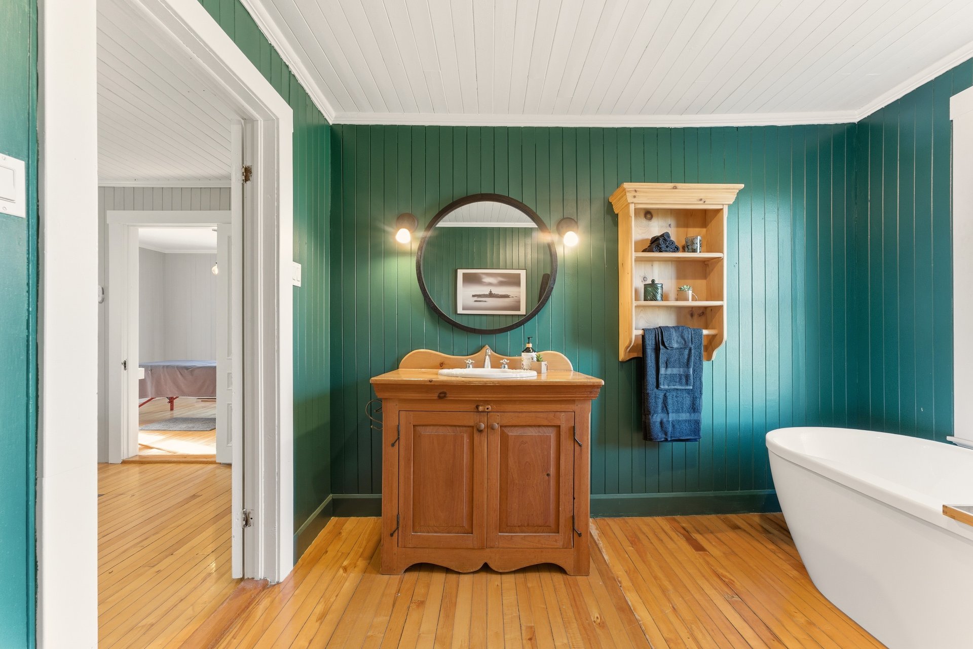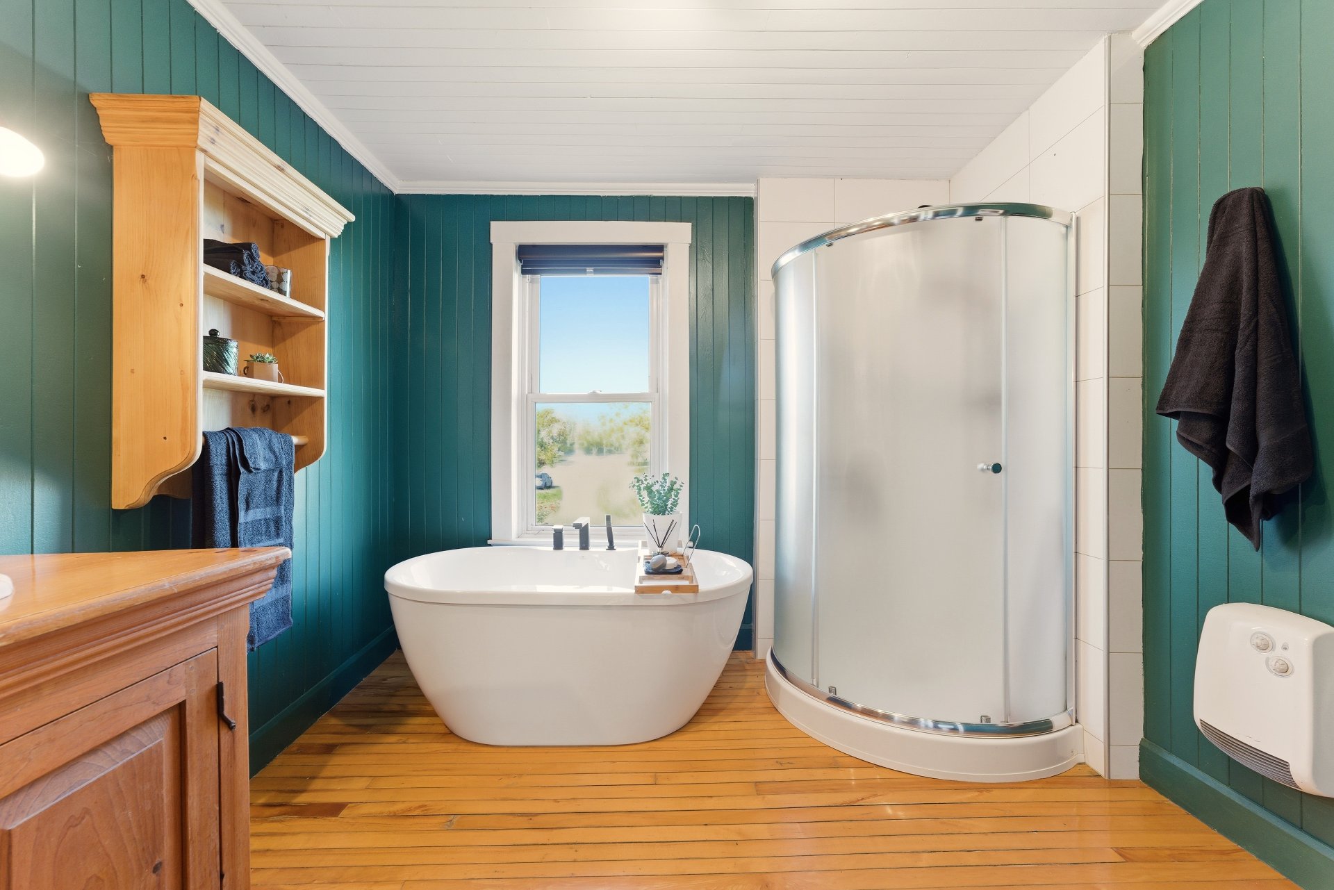 à bois et à la thermopompe. La cuisine et la salle de bain