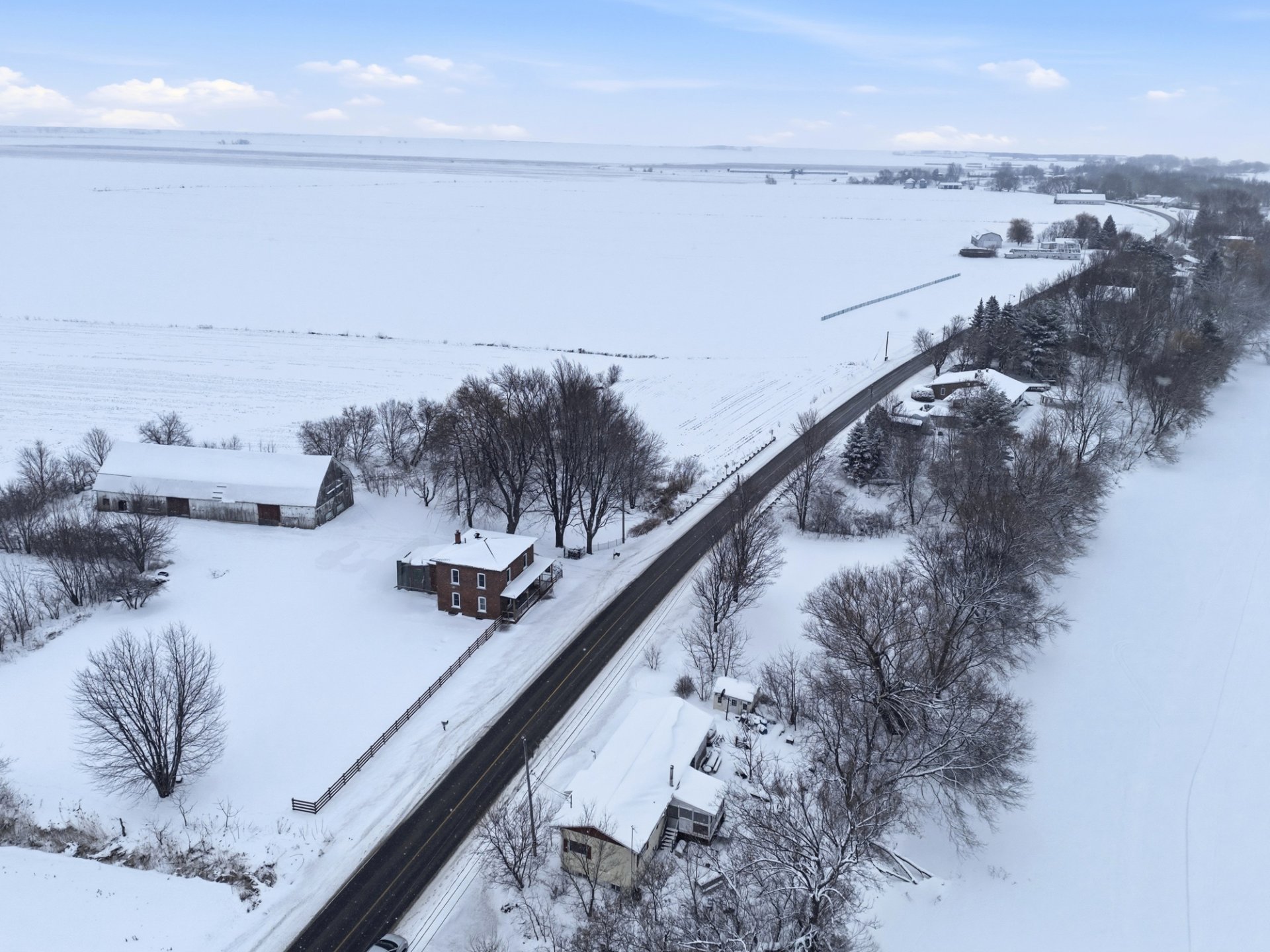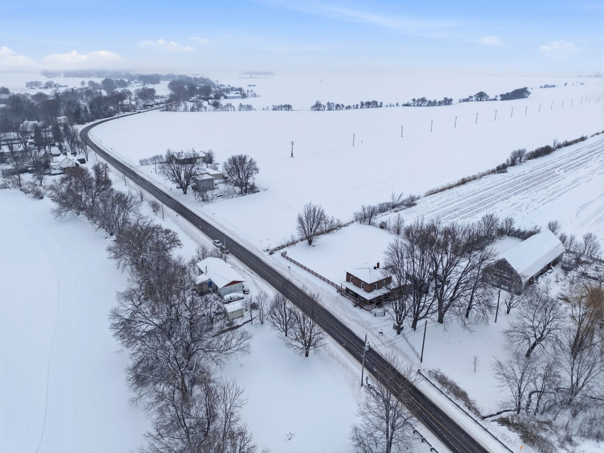 un rang tranquille, entourée de champs ouverts et à