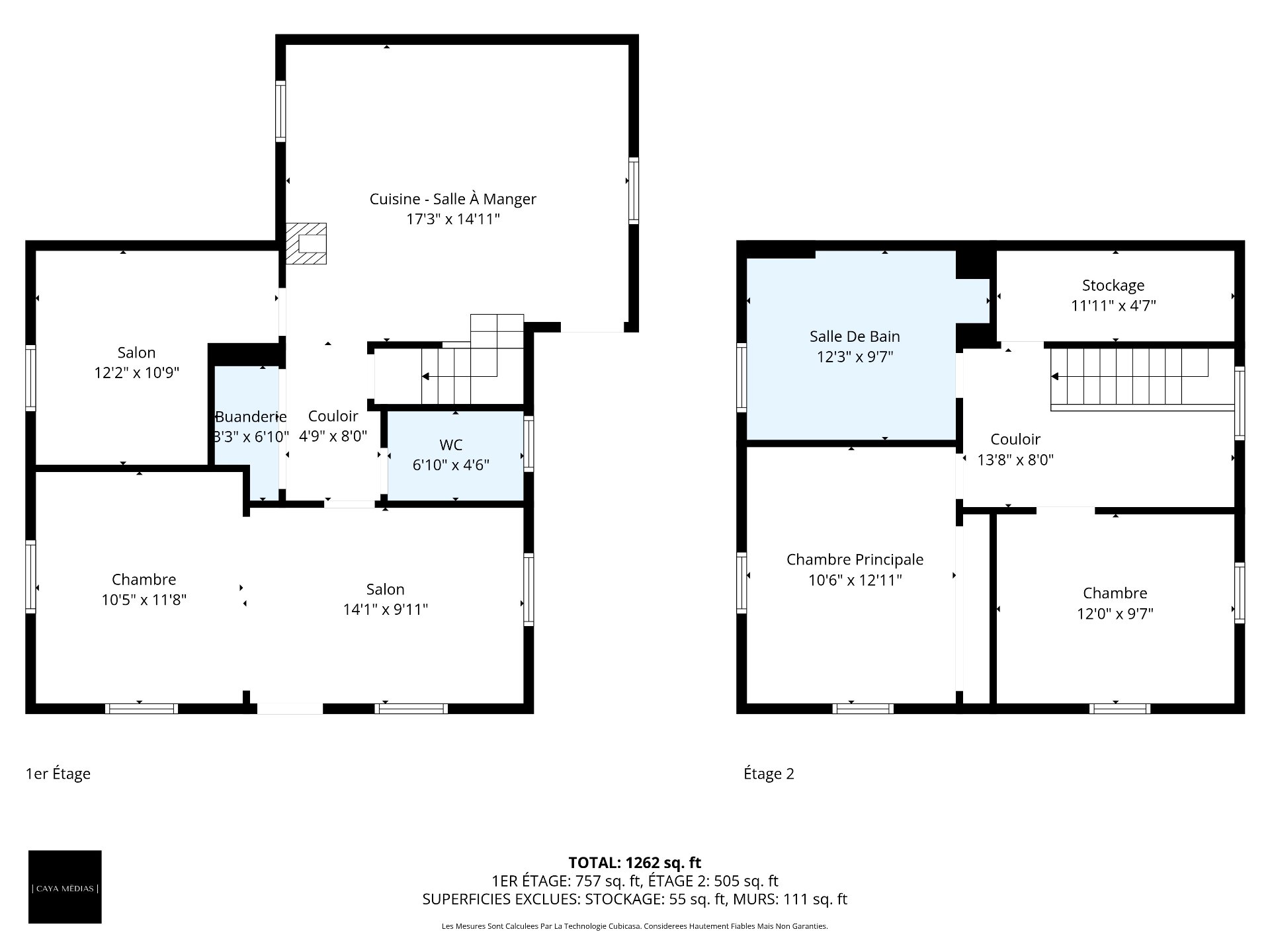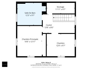 | Salle de bains | 12.3 x 9.7 P | 2ième étage | Bois |